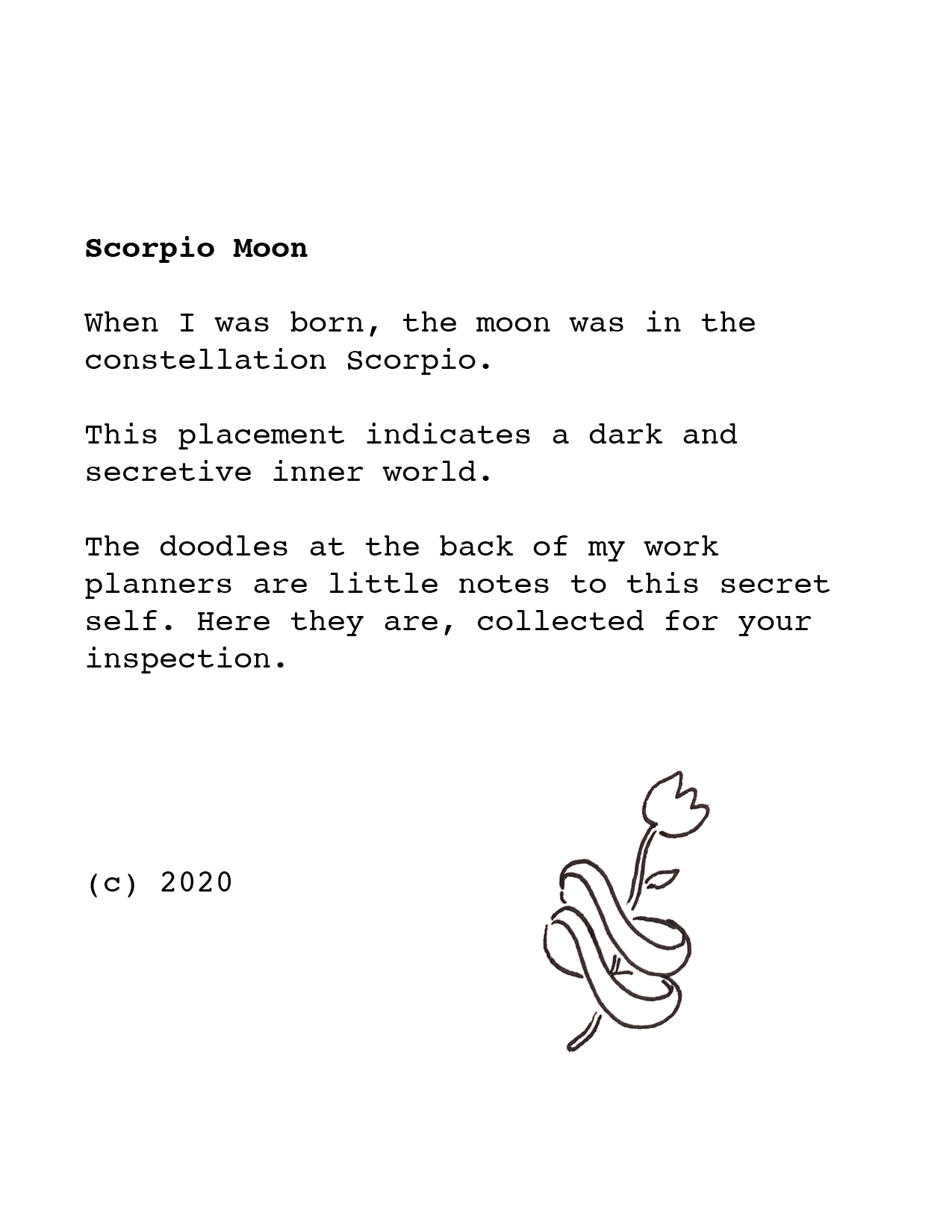 “Scorpio Moon” (2020), excerpts from self-published zine.